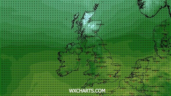 The north of England will be between 9C and 14C, while Wales will be between 10C and 13C. The midlands will be between 12C and 15C, and the south of England will be between 11C and 14C.
